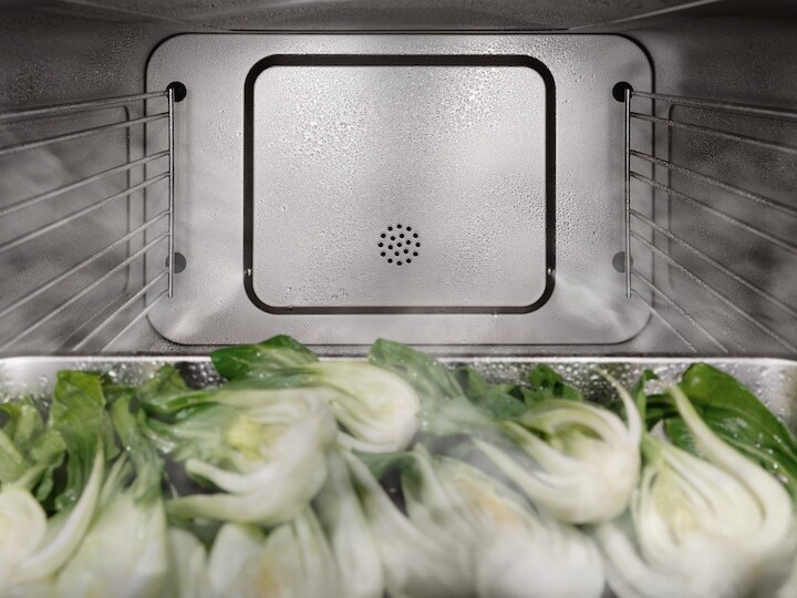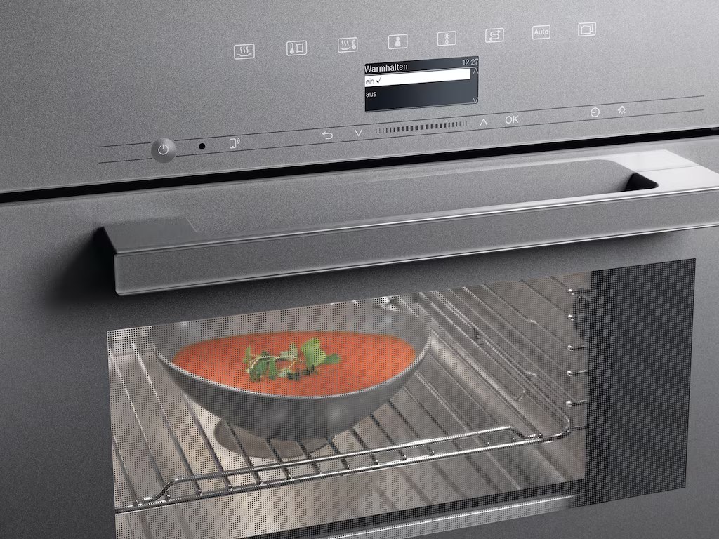 Камера для приготовления пищи из нержавеющей стали с льняной структурой. Высокое качество и простота очистки: все наши пароварки оснащены варочной камерой из нержавеющей стали. Совершенство на ваш вкус DualSteam Пароварка Miele идеально дополняет духовку и варочную панель и обеспечивает наилучшие результаты приготовления. Быстрое время нагрева и приготовления, а также равномерное распределение пара облегчают приготовление пищи — это достигается благодаря мощному внешнему парогенератору (3,3 кВт) и особому расположению и выравниванию двух паровых сопел DualSteam. Автоматические программы При приготовлении блюд с использованием автоматических программ вам не нужно выбирать температуру или время приготовления — ваш прибор работает автоматически и облегчает вашу повседневную работу на кухне. Вы предпочитаете, чтобы морковь была более твердой? Для многих продуктов степень готовности можно регулировать индивидуально.