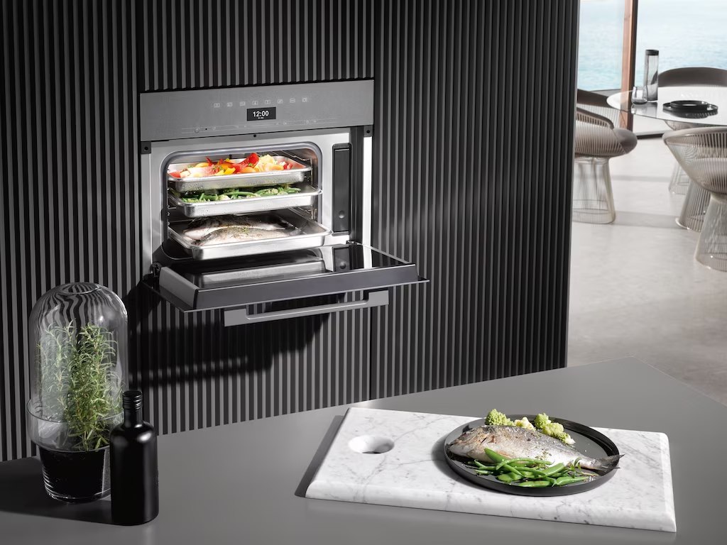 Пароварка с микроволновкой Miele DGM 7845 — современная модель для быстрой, бережной и разнообразной готовки. Оснащена сенсорным управлением M Touch с поддержкой русского языка, интеллектуальными функциями и интеграцией в систему умного дома. Камера объёмом 40 литров и компактный формат делают эту модель универсальным решением для кухни.