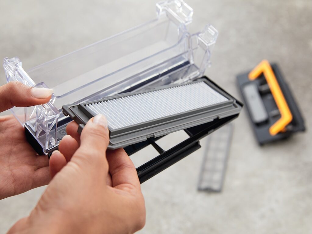 Quattro Очищающая Мощность Эффективно очищает ковры и твердые напольные покрытия: 4-ступенчатая система очистки с 4 режимами уборки для идеального сбора пыли. 3D-умная навигация Две фронтальные камеры позволяют Scout RX3 с высокой точностью обнаруживать трехмерные объекты. Он автоматически определяет расстояние до возможных препятствий и безопасно их объезжает. Таким образом, мебель и предметы защищены от столкновений. Даже сложные пространственные конструкции не представляют проблемы для Scout благодаря интеллектуальной 3D-навигации. Технология защиты мебели Безаварийное движение: мебель, ступеньки и препятствия распознаются, что предотвращает столкновения и падения. Фильтр AirClean Plus Фильтр AirClean Plus гарантирует, что собранная пыль останется там, где ей и положено: в пылесборнике. Эффективная фильтрация обеспечивает особую чистоту воздуха в помещении.